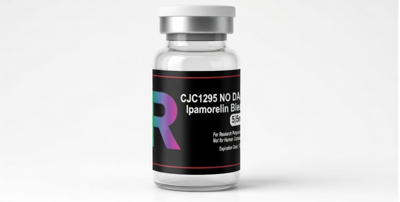 This blend combines Ipamorelin (a selective ghrelin mimetic / growth hormone secretagogue) and CJC-1295 (No DAC) (also known as Mod GRF 1-29, a GHRH analog). The blend typically features a 1:1 ratio (e.g., 5mg/5mg or 10mg total per vial), leveraging complementary mechanisms: Ipamorelin via GHS-R1a/ghrelin receptor and CJC-1295 via GHRH receptor.